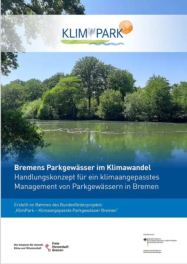 Basierend auf den Ergebnissen des Parkgewässer-Monitorings und der Diskussionen im Rahmen des Kooperationsforums wurde ein gesamtstädtisches Handlungskonzept für ein innovatives, nachhaltiges Management der Bremer Parkgewässer im Klimawandel erstellt. Das Handlungskonzept enthält eine detaillierte Beschreibung der Parkgewässer und zeigt Handlungsbedarfe auf. Außerdem werden konkrete Unterhaltungsoptionen unter Verwendung innovativer Maßnahmen dargestellt sowie eine Integration von Potenzialen der Starkregenvorsorge für die jeweiligen Parkgewässer definiert. Auch Kostenabschätzungen für die unterschiedlichen Maßnahmen im Hinblick auf Abwägung von Alternativen und Haushaltsanmeldungen für künftige Maßnahmenumsetzungen wurden herausgearbeitet. Damit könnte das Handlungskonzept als Strategie Bremens für das Parkgewässermanagement dienen und sollte regelmäßig fortgeschrieben werden.